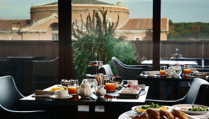 Set on the hotel’s panoramic rooftop, Le Roof restaurant provides an exclusive setting overlooking the historic Parioli district. The view, combined with warm lighting and refined décor, creates a sophisticated yet welcoming atmosphere—ideal for both formal dinners and celebratory occasions.