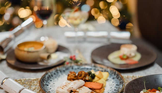 Begin your evening with a complimentary glass of fizz, then enjoy a carefully curated selection of festive dishes crafted to bring a touch of seasonal magic to your gathering.