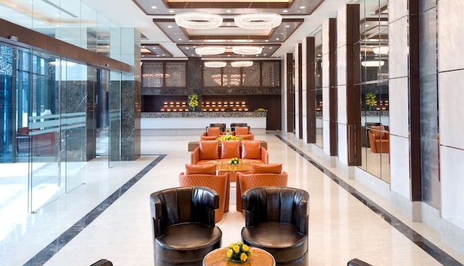From the exotic flavors of tender kebabs to the comfort of a pastry and cup of tea, the restaurants at the Radisson Blu in Gorakhpur offer a range of delicious choices to please every guest. Begin your day with our Super Breakfast buffet at VUE, and enjoy an afternoon hot drink and dessert at KOFÉ. For dinner, you can reserve a table at our specialty restaurant, The Great Kabab Factory. Perfect for entertaining a client or unwinding at the end of the day, High – The Bar offers a chic retreat with well-mixed cocktails or mocktails, fine spirits, and tasty appetizers in an upbeat atmosphere. Join friends to experience the energy of Elektra RestroBar for great music, food, refreshments, and vibes. If you’re planning a private event, our rooftop Taal venue provides barbecue grills and an exclusive space overlooking Ramgarh Tal Lake.