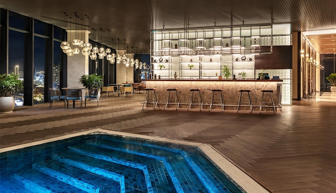 Located at the highest level of our hotel next to the indoor swimming pool, Sky Bar provides the perfect view when admiring the beauty of Ha Long Bay heritage. Soaking in the rays of early morning sun, or enjoying the sparkling night sky with cocktails, will ensure unforgettable moments.