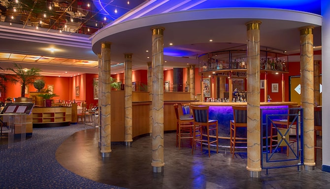 Dine and drink in style at the Radisson Blu Hotel, Halle-Merseburg. Fuel up in the morning with our satisfying and generous breakfast buffet and return for dinner, surrounded by beautiful paintings by Gustav Klimt. At Rabenbar our bartenders serve you delectable cocktail creations and fresh beers from the region.