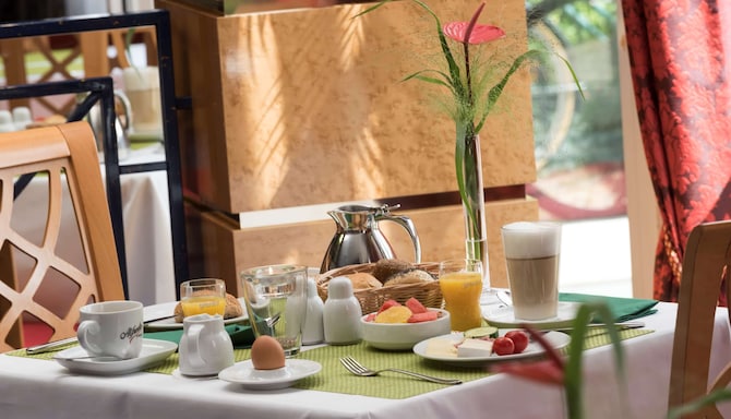 Start your morning with our breakfast buffet or savor tasty dinner options at Restaurant Belle Epoque. To relax in the evenings, our stylish hotel bar is the ideal place.
