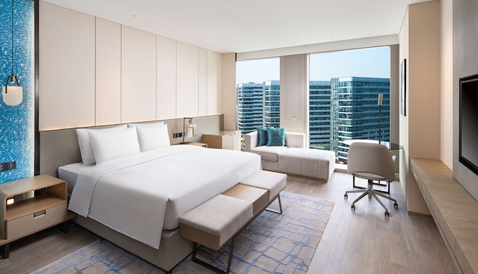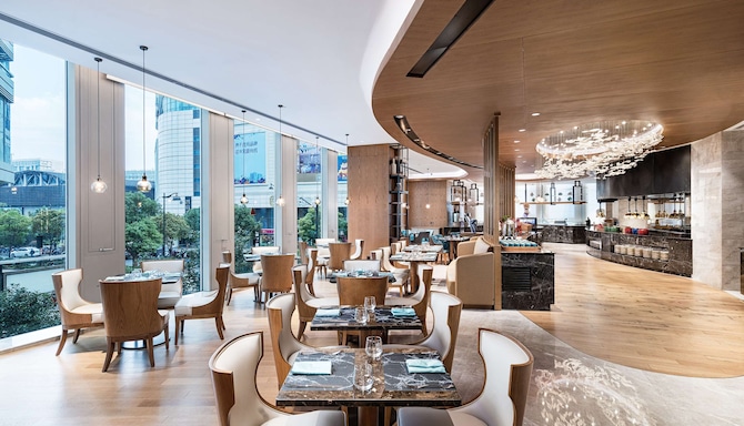 The Radisson Blu features three eateries to satisfy your cravings throughout the day. To fuel up for a day of meetings, head to Sun Café and indulge in a delicious breakfast buffet. Want to sample traditional Japanese fare, such as sushi and tempura? Our Japanese Restaurant provides a great atmosphere and tasty cuisine. If you’re planning to surprise your loved one with a romantic dinner, Li Yuan Chinese Restaurant is the perfect choice. In addition to private dining options, it boasts awe-inspiring views of Hangzhou’s skyline.