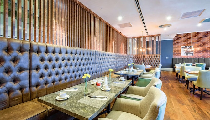 Located on the 13th floor, Vivace Restaurant & Show Kitchen offers patrons striking views of Sandton City and Johannesburg alike. Decorated in a modern contemporary style, Vivace has a warm ambiance suited for any occasion. Join us each morning for our signature breakfast buffet, and then return to watch the chefs prepare each meal fresh in Vivace’s open plan kitchen. Head Chef Tristan Latouf is known for his fresh and seasonal approach, embracing strong Mediterranean flavors while preserving an authentic South African feel.