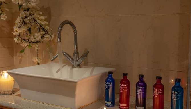 Your experience starts with a soothing Welcoming Foot Ritual, followed by your personalized choice of a Cleansing Salt Scrub, a customized Full Body Hot Stone Massage, and our recommended Elemis Pro-Glow Facial, enhanced by a Warm Hot Oil Scalp Massage for deep relaxation. Total treatment time is 2 hours 30 minutes.