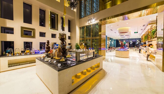 At the Radisson Blu Hotel Liuzhou, we offer you a spread of restaurants and bars for everything from breakfast to after-dinner drinks. Before heading to your first conference session of the day, you can stop by Panorama Restaurant to enjoy the Super Breakfast buffet featuring dishes from around the world. Hosting clients for lunch? Chinese Restaurant offers an impressive fine dining experience with authentic Chinese cuisine. After a full day of business, our on-site bars make it easy to unwind with friends or clients. You can take in city views from the 26th floor at 26Bar or enjoy quick, casual meals of tapas and cocktails at Zest.