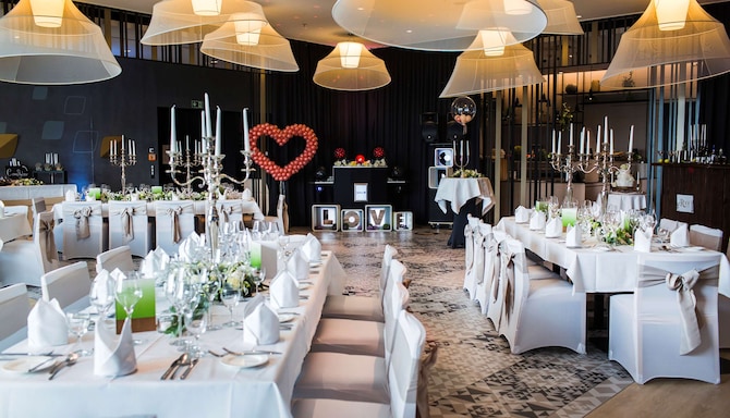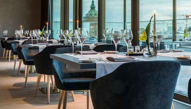Enjoy local and international dishes while admiring superb views of the city from the stylish Restaurant SQUARE, located on the 6th floor. During the day, unwind with one of our coffee specialties and delicious cakes and bagels at Café BRUE. In the evening, excellent drink and snack options are offered in our ROOF Bar, which is also located on the 6th floor.