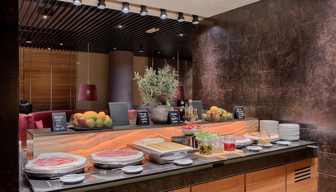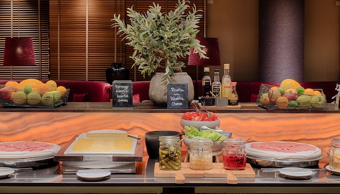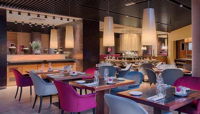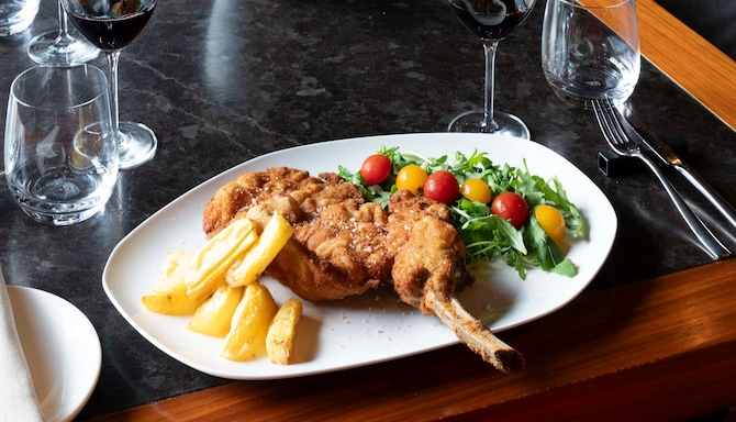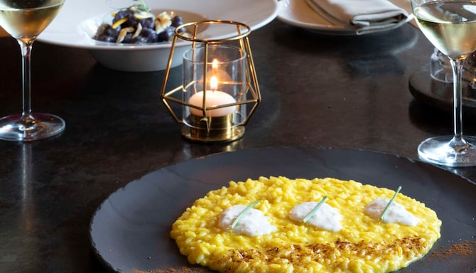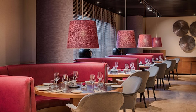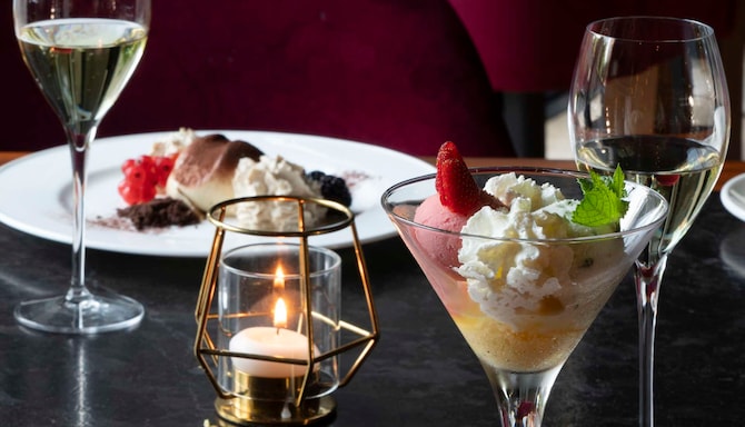 Enjoy a carefully curated wine selection accompanying our chef’s appetizing inventions in a sophisticated, modern setting with soft lighting and warm tones.