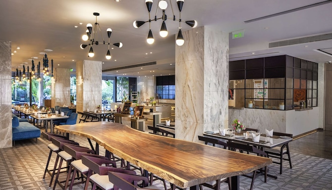 Our all-day dining restaurant, Fiona, is situated on the lobby level of the hotel. Revel in the culinary diversity at this multi-cuisine haven. Begin your day with an indulgent breakfast buffet, savor a leisurely lunch, and end with an elegant dinner spread. During buffet timings, feast on a selection of delectable dishes. Outside buffet hours, immerse yourself in a bespoke culinary experience with our extensive à la carte menu. Fiona, where every moment is a celebration of taste and refinement.