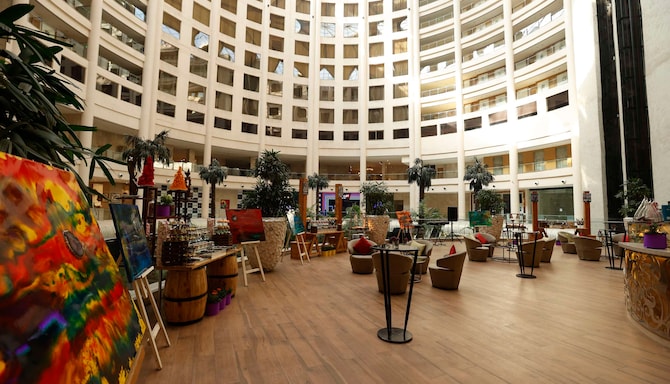 Flooded in natural light, our Atrium area offers comfortable seating and a cozy setting perfect for quick, informal meetings or for taking a break between sightseeing and shopping.