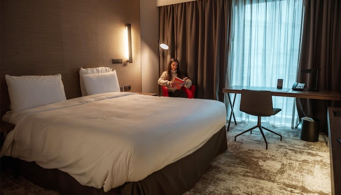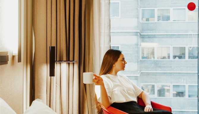Whether you’re traveling for business or just landed at the airport, Radisson Blu CDG Airport Terminal Hotel, Paris offers 305 quiet, stylish rooms and suites. Each of our rooms features elegant, modern design from Christophe Pillet, and soft natural tones for a warm, relaxing atmosphere.