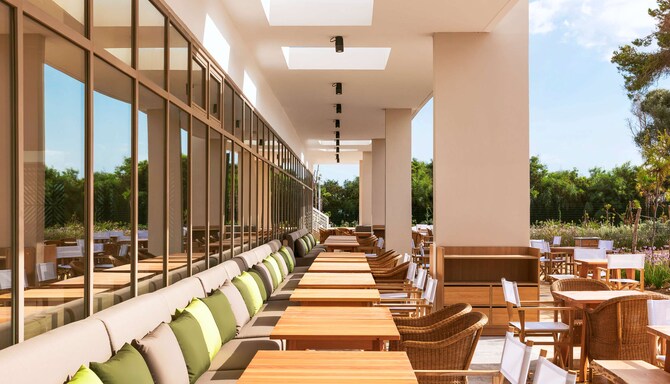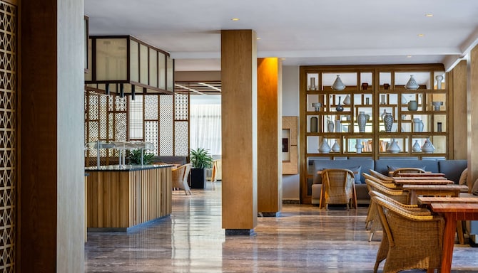 Experience gorgeous pool views and a warm, welcoming atmosphere at The Cedar. Open for breakfast, lunch, and dinner, the restaurant offers a delightful culinary experience perfect for the whole family. Explore our buffet and savor Moroccan delicacies, fresh fish, and homemade desserts made with fresh, locally-sourced ingredients. The Cedar restaurant caters to a variety of dietary preferences including vegan, gluten-free, and dairy-free options.