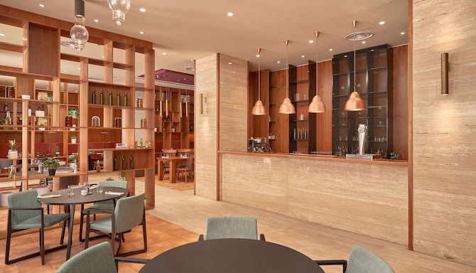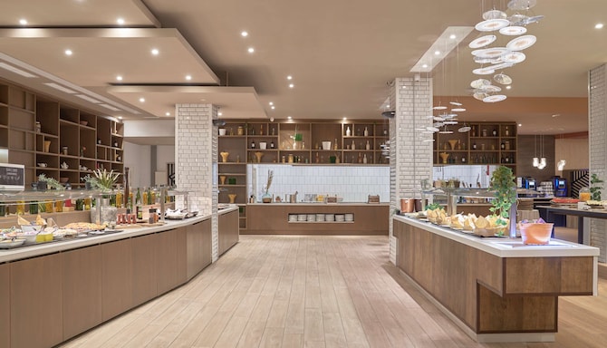 Enjoy various dining options in the comfort of our hotel. From gourmet Mediterranean and local cuisine in a stylish setting to poolside dining, we offer it all. Start your day at the Larder restaurant, where an extensive breakfast awaits you. Head to one of our poolside venues during the day, where you can lounge as long as you want while enjoying drinks and delicious snacks. For dinner, stop by our fine dining restaurant to indulge in Mediterranean and local flavors that will delight your taste buds.