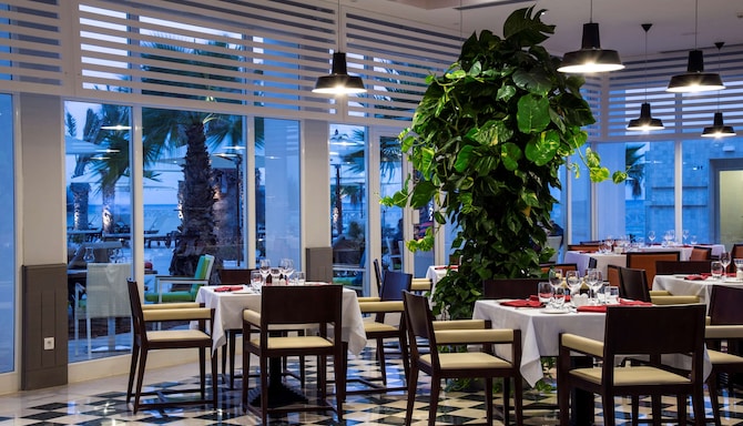 Our hotel in Hammamet offers you three on-site restaurants for a delightful culinary experience, only a short walking distance from your hotel room. Choose local Tunisian dishes, Mediterranean cuisine, or international fare. Each restaurant has unique surroundings with beautiful décor that reflects the Tunisian culture. If you want to make a reservation, easily contact the restaurants directly from your room. Our hotel also has four on-site bars offering from nightclub fun to drinks by the pool or simply a relaxing spot for a cup of coffee. The Arabic Lounge stands out as an ideal spot to meet with friends or colleagues, while El Kebir Bar is a lively place to mingle and dance the night away.