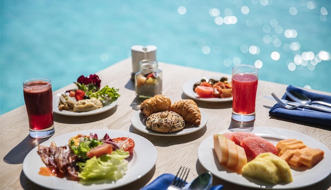 When you’re in the mood for refreshments, head to the poolside bar or hang out with friends at Mahurab Bar & Lounge, our wine, cocktail, and cigar bar. For a memorable evening, visit Crusoe's Beach Bar, our Robinson Crusoe-inspired bar, which offers two levels of seating overlooking the beach.