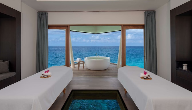 A sanctuary of seclusion and serenity, the overwater Blu Spa features six couples’ treatment rooms, including two with spa baths. Soothe your senses with authentic Asian and contemporary massages, aromatherapy, body wraps, facials, manicures, and pedicures. The Blu Signature Massage is a truly unique experience for spa lovers, and our collection of packages promise immersive wellness journeys.