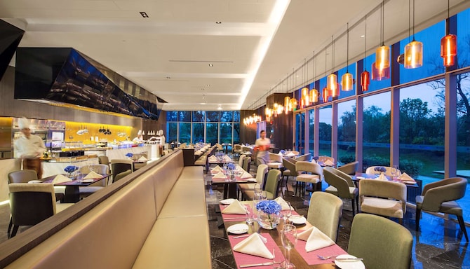 From a quick breakfast before morning meetings to private business dinners, the two restaurants at the Radisson Blu Shanghai Pudong Jinqiao ensure your day begins and ends with delicious cuisine. Stop by Latitude 31°, our casual, all-day dining restaurant, to indulge in Western and Pan-Asian dishes. Need to impress some important clients? Reserve one of the private dining rooms at Shanghai Garden, offering Shanghainese and Cantonese creations in a posh atmosphere with five-star service. Before heading to your room or suite, settle into a plush club chair to chat with colleagues or friends and unwind with a refreshing cocktail at the Lobby Lounge. Our lounge features live music and a full beverage menu to complement a relaxed and stylish atmosphere. You can also enjoy a themed afternoon tea under the warm sunshine with fresh and flavorful coffee or tea.