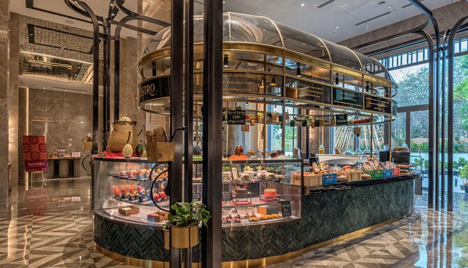 Enjoy handcrafted cakes and pastries or bespoke teas and coffee at Le Bistro