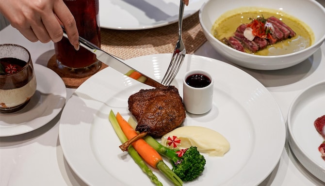 From breakfast to dinner, enjoy delicious all-day dining options at Chateau Botanique, located on the second floor of our hotel. Start your day right with a hearty breakfast buffet. Return for lunch or dinner to enjoy our selection of delicious international cuisine in an elegant, fine dining atmosphere.