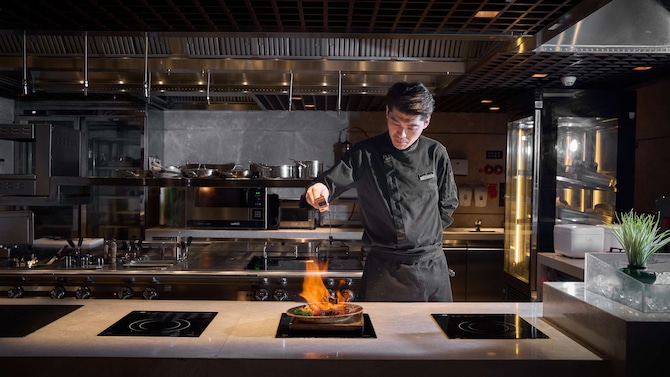 Discover our Maillard 69 All Day Dining Restaurant on the first floor, renowned for its à la carte menus featuring authentic Chinese classics and Western favorites as well as refreshing light foods. A standout highlight is our dry-aged steak experience, crafted in-house using bespoke aging cabinets to ensure unparalleled tenderness and depth of flavor. Pair your meal with our on-site service for a refined dining ritual that has earned rave reviews. Perfect for family gatherings or business lunches, this vibrant venue promises an unforgettable feast.
