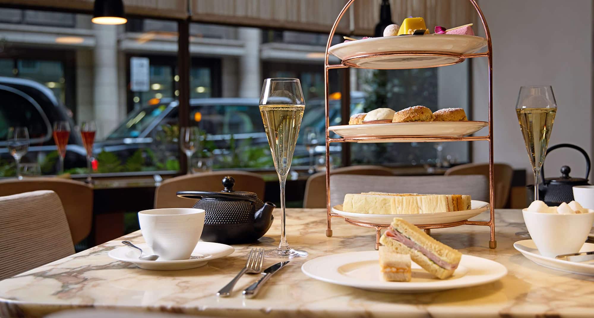 - Champagne afternoon tea for two people, served with a glass of Moët & Chandon Brut Imperial NV. Read more here.