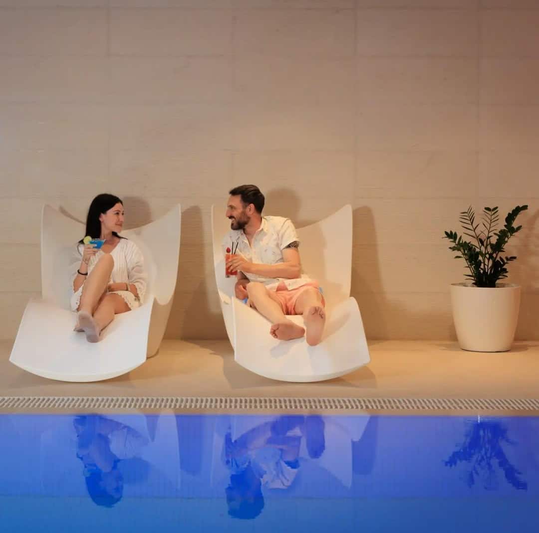 Designed for both active lifestyles and restorative moments, the space features a fully equipped fitness center, indoor and outdoor swimming pools, and a complete spa experience including sauna, steam room, and whirlpool.