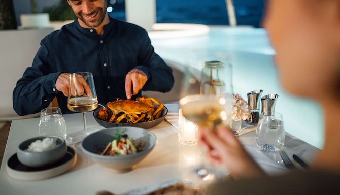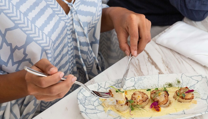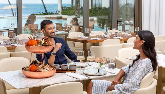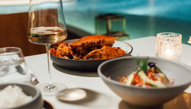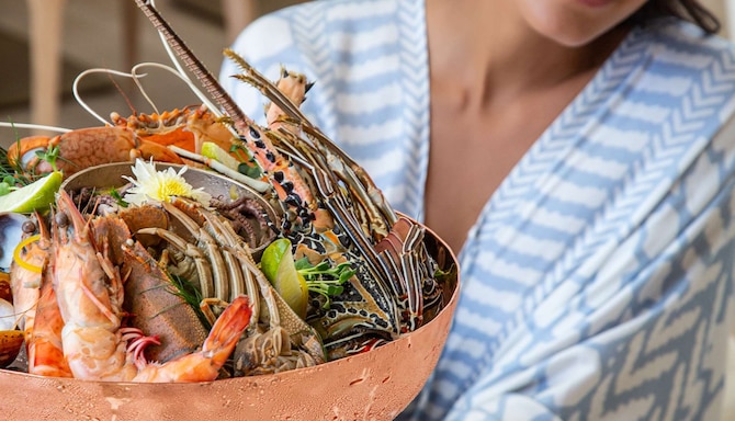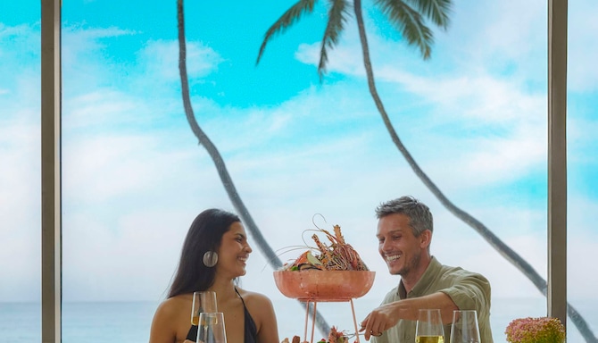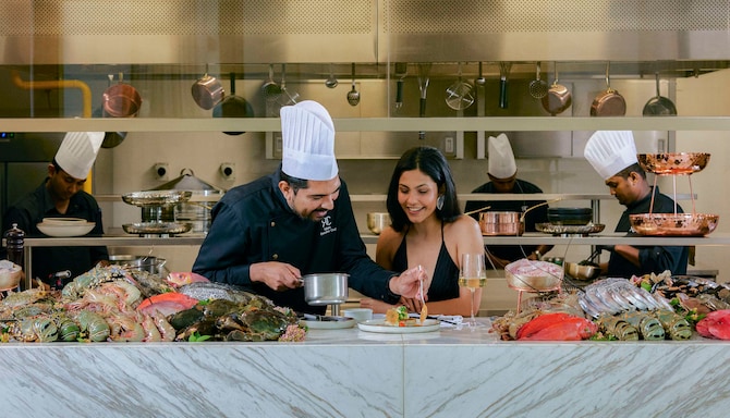 Enjoy fresh catch-of-the-day dishes at Catch Restaurant. Take your pick from our fresh seafood display, and have our expert chefs prepare it in the style of your choice, including Mediterranean, Thai, Chinese, Indian, or Sri Lankan. Choose your preferred cooking method, including grilled, pan-fired, wok-fried, deep-fried, or steamed, and watch as your meal comes together with precision and care. Delight in the fragrant flavors of the ocean and savor delicious signature dishes such as seafood towers, Sri Lankan mud crab, and large langostine prawns.