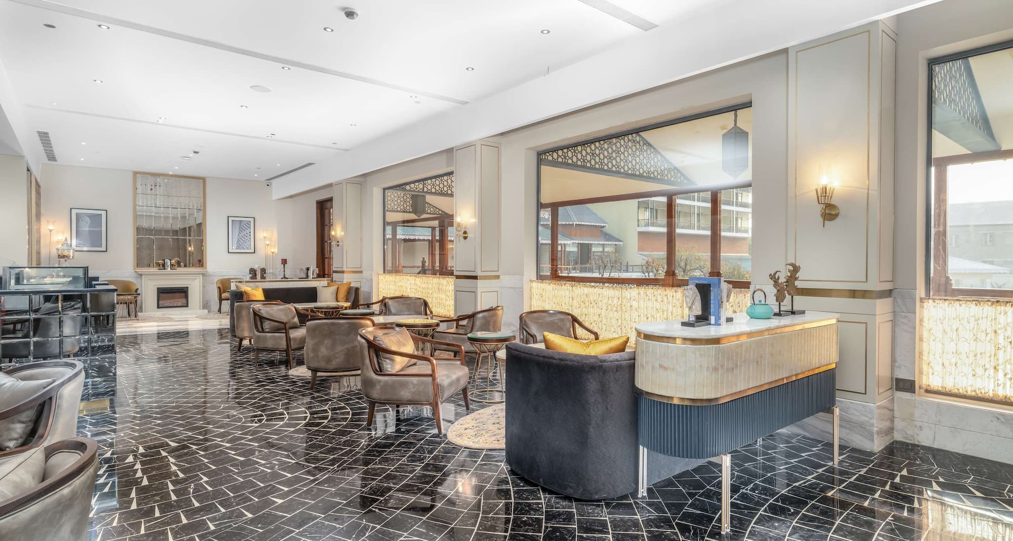 Sapphire Lounge is a sophisticated space at Radisson Collection Hotel & Spa, Riverfront Srinagar, designed for relaxed conversations and leisurely moments.