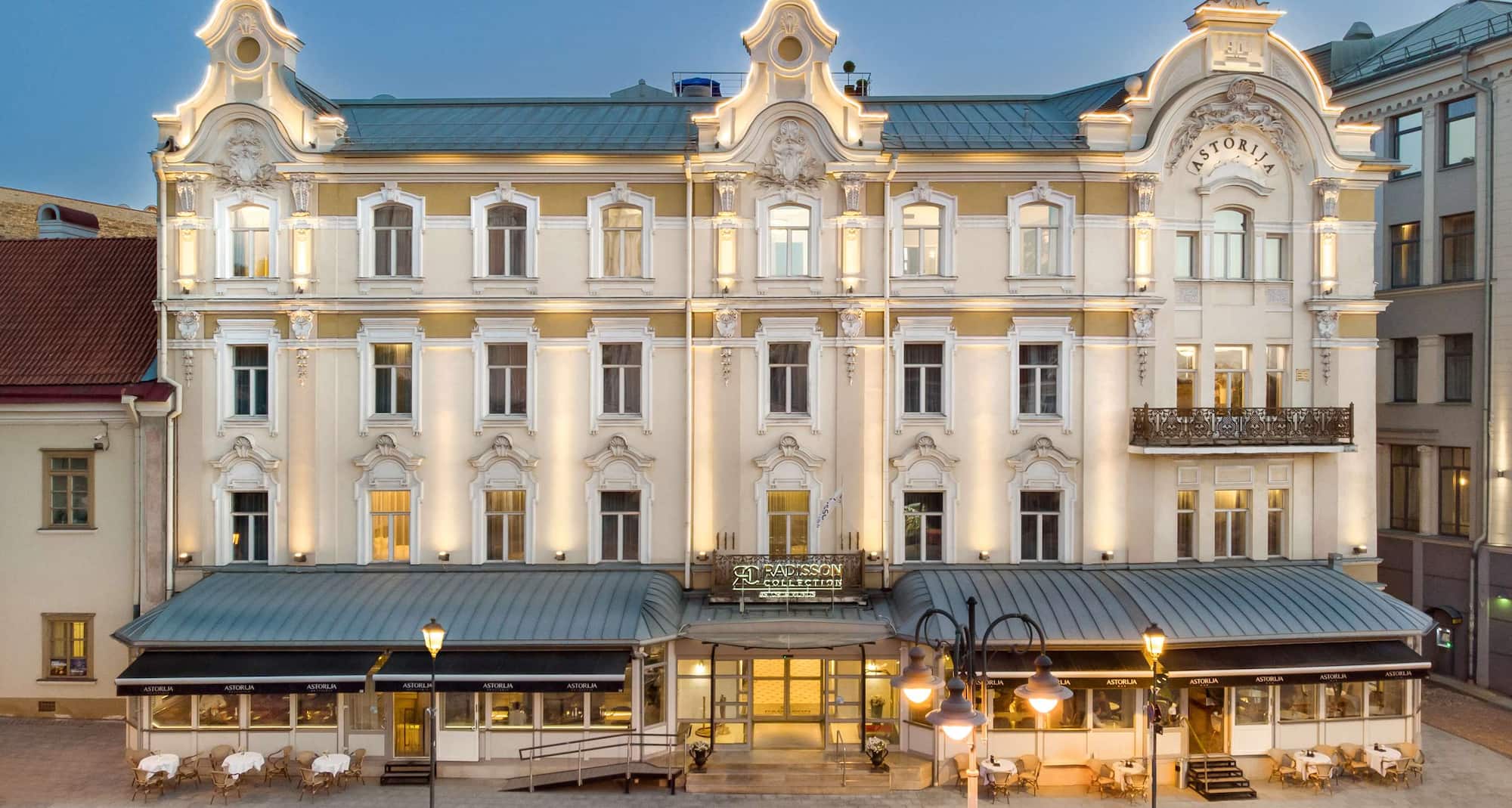 Stay in the heart of Vilnius at Radisson Collection Astorija Hotel, Vilnius, where the city's light unfolds just beyond.
