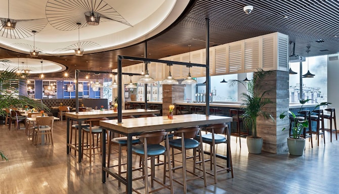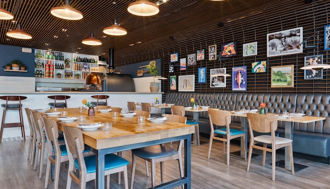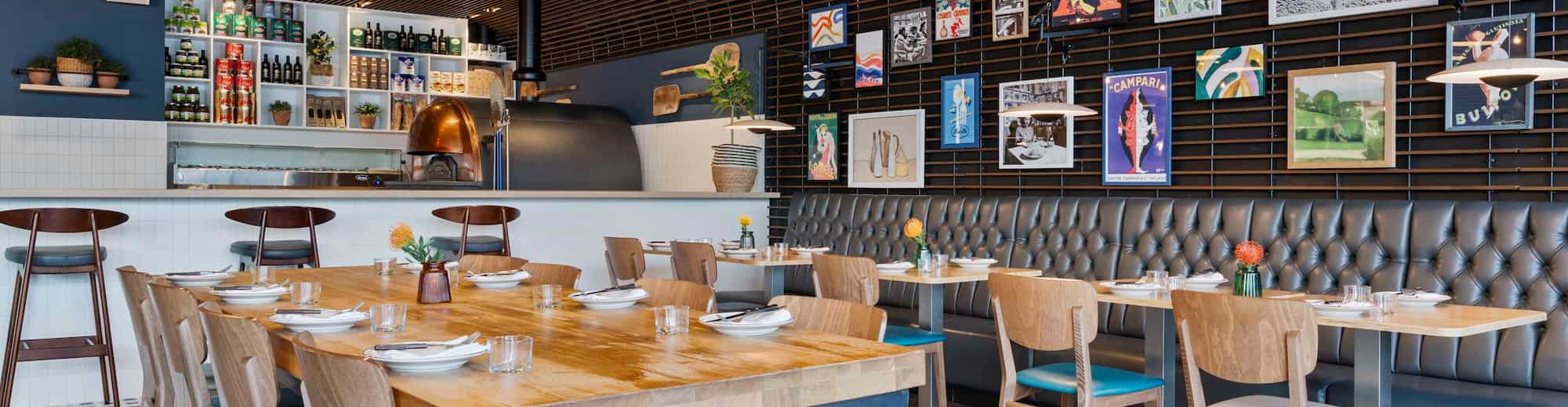 Step into our stylishtrattoria, where the essence of Italy comes alive. Indulge in a menu featuring freshly made Italian cheeses, cured meats, traditional pasta dishes, risotto, and authentic Neapolitan-style pizzas, all crafted with the finest ingredients. Complement your meal with a selection from our impressive wine list, offering regional Italian varieties to enhance your dining experience. After your meal, unwind with a classic Negroni or choose from our collection of Italian liqueurs for the perfect ending to a memorable evening.