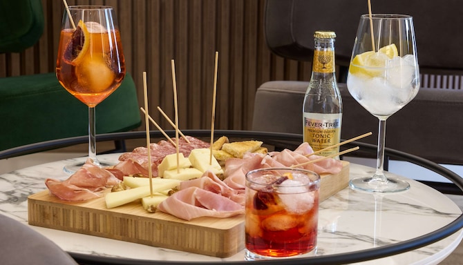 Enjoy an authentic dining experience at Radisson Hotel Ferrara. A true expression of Mediterranean lifestyle, our MED Restaurant offers a convivial atmosphere and space for up to 70 guests. For a light snack or a refreshing drink with friends, stop by our Lobby Bar.