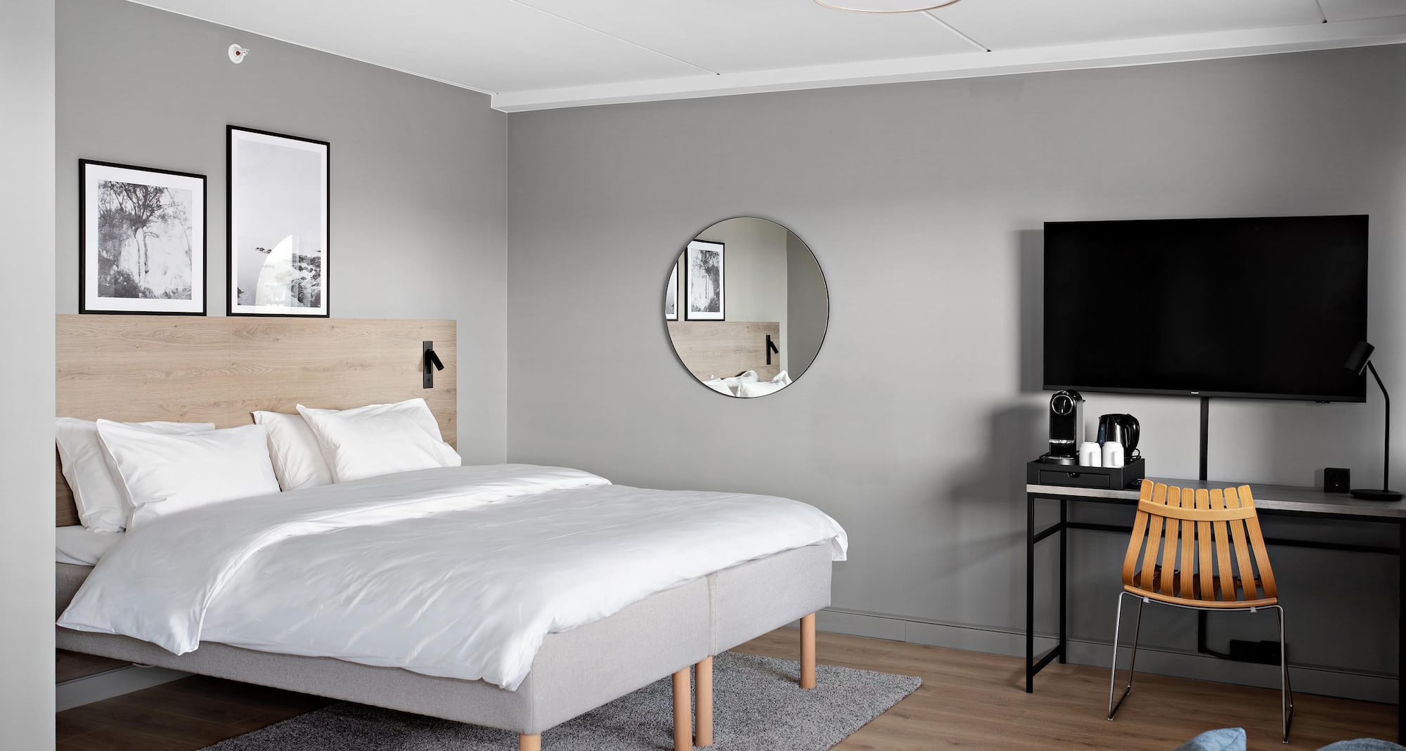 Our welcoming rooms and suites are designed with stylish designs, natural materials, and calming tones—a perfect blend of function and simplicity. Light wood, soft textiles, and smart details create a serene atmosphere for rest and focus. A modern take on Nordic comfort.