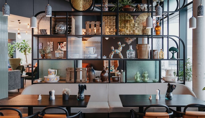 Start your day full of energy with our fresh breakfast, served daily. For lunch and dinner, our bold new restaurant and bar, Lütze, serves up fast, friendly, and feel-good food with a conscience. Fill up on local pastries, carefully crafted bowls, and authentic Berlin open-face sandwiches made with fresh, rustic bread. Pull up a seat at our bar for a drink, to meet with friends, or catch up on your emails. If you need a snack, or you’re in a hurry, our kiosk, Wundermart, has a selection of snacks, drinks, and last-minute items in stock.