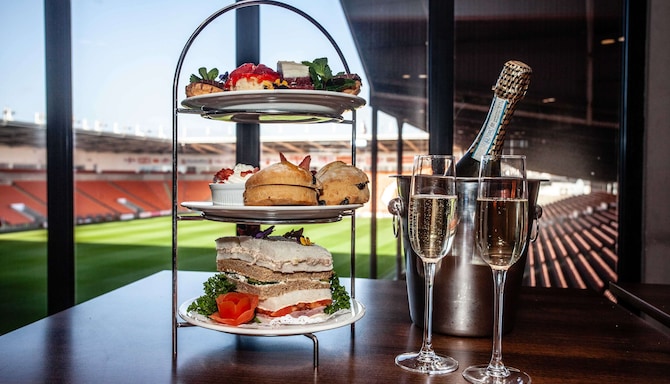 Our hotel restaurant, The Corner Flag, serves up hearty and healthy traditional food, expertly crafted by our team of chefs. As the name suggests, The Corner Flag is located in the corner of Bloomfield Road Stadium on the second floor, offering unique views with our floor to ceiling windows. Enjoy a wide array of drinks overlooking the pitch with the iconic Blackpool Tower serving as a backdrop.