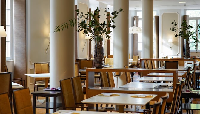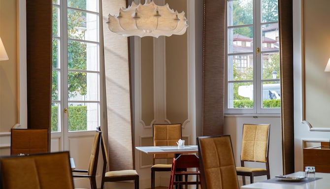 The on-site Viator restaurant blends the authentic essence of Asturian cuisine with a modern touch. Featuring an avant-garde design, it offers a bright and welcoming atmosphere where every dish surprises with its flavor and originality. Included in the half-board plan, Viator is the perfect setting to enjoy unique dinners that elevate your stay at Las Caldas.
