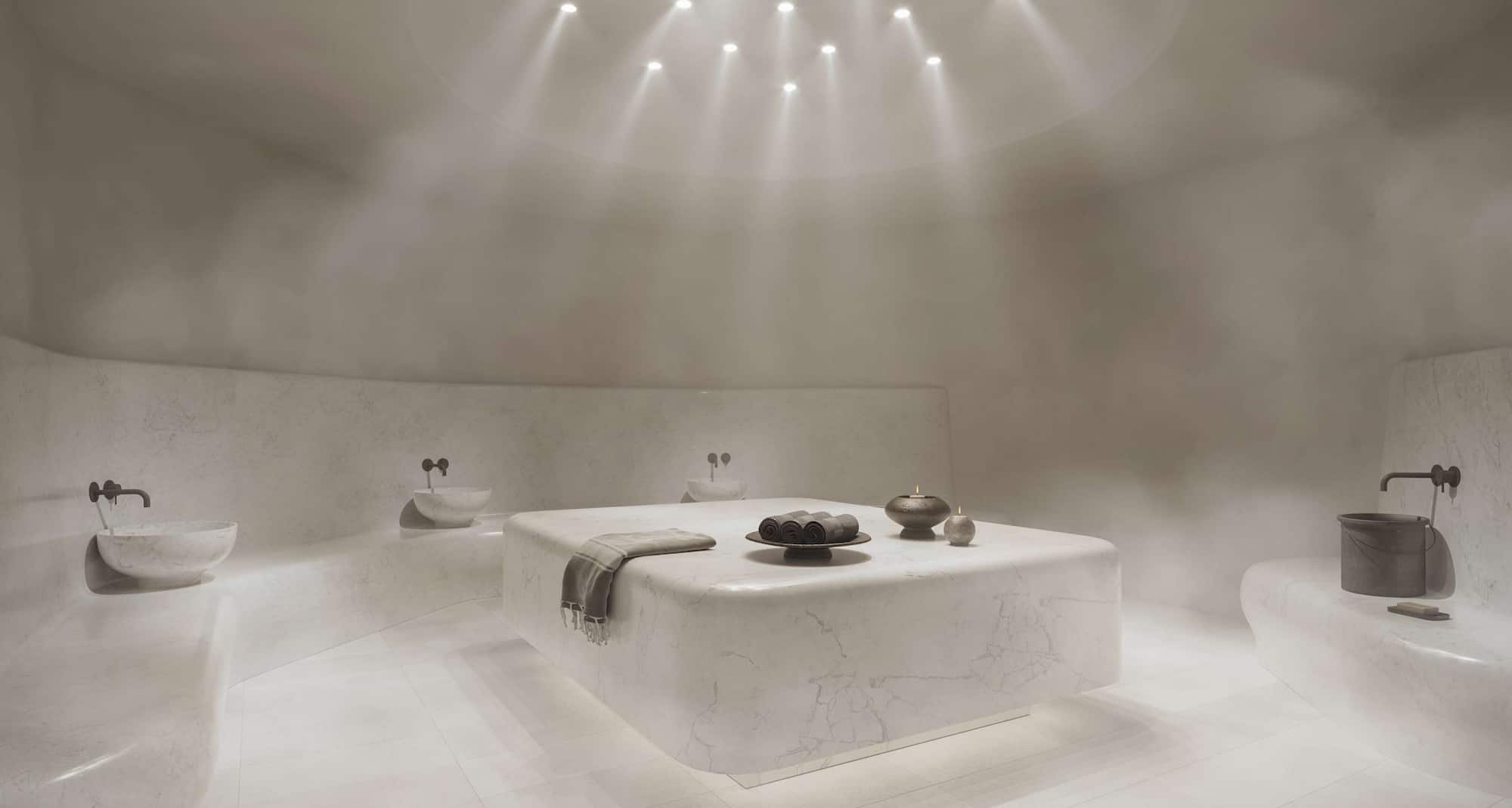 - Relaxation in the watsu zone—an intimate swimming pool with a fireplace, a sauna, and a relaxation area only for adults