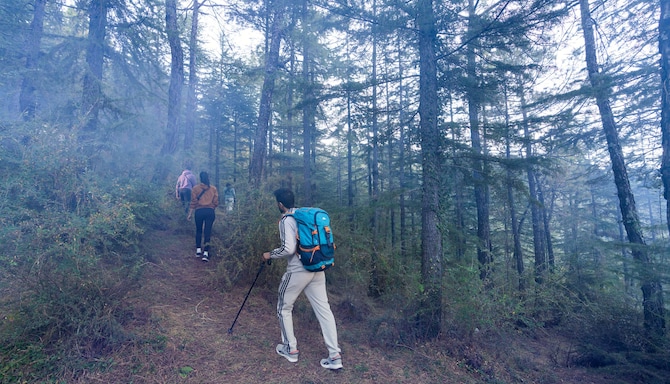 Hop on the Mashobra-Kufri trail for a scenic hike. Walk through this 12-kilometer-long trail to Kufri featuring dense deodar forests, small hamlets, and charming meadows for a unique glimpse into the region’s untouched natural beauty.