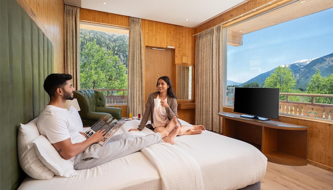 Our picturesque Palchan retreat offers panoramic views of the Himalayan peaks. All 53 rooms and suites boast spacious balconies and stylish décor, featuring a complete cedar wood look and relaxing earth tones. Enjoy a peaceful stay with all essential amenities, including individual room climate control to keep you warm even on the coldest of days.