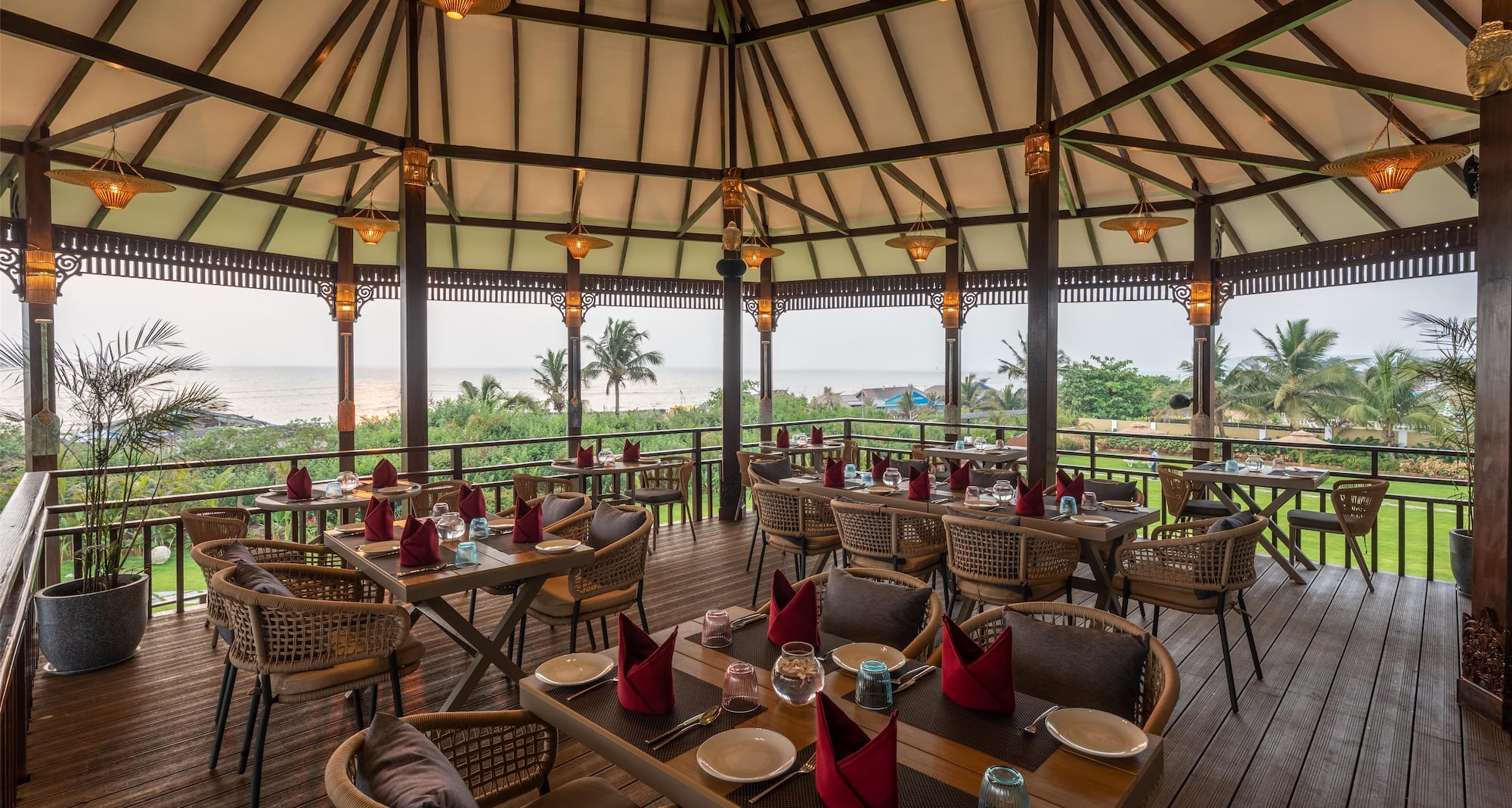 Enjoy fresh drinks and flavorful dishes while taking in the sights, sounds, and sea breeze of the Arabian Sea, creating a dining experience that’s both memorable and relaxing—perfect for breakfast, lunch, dinner, or a nightcap by the beach.