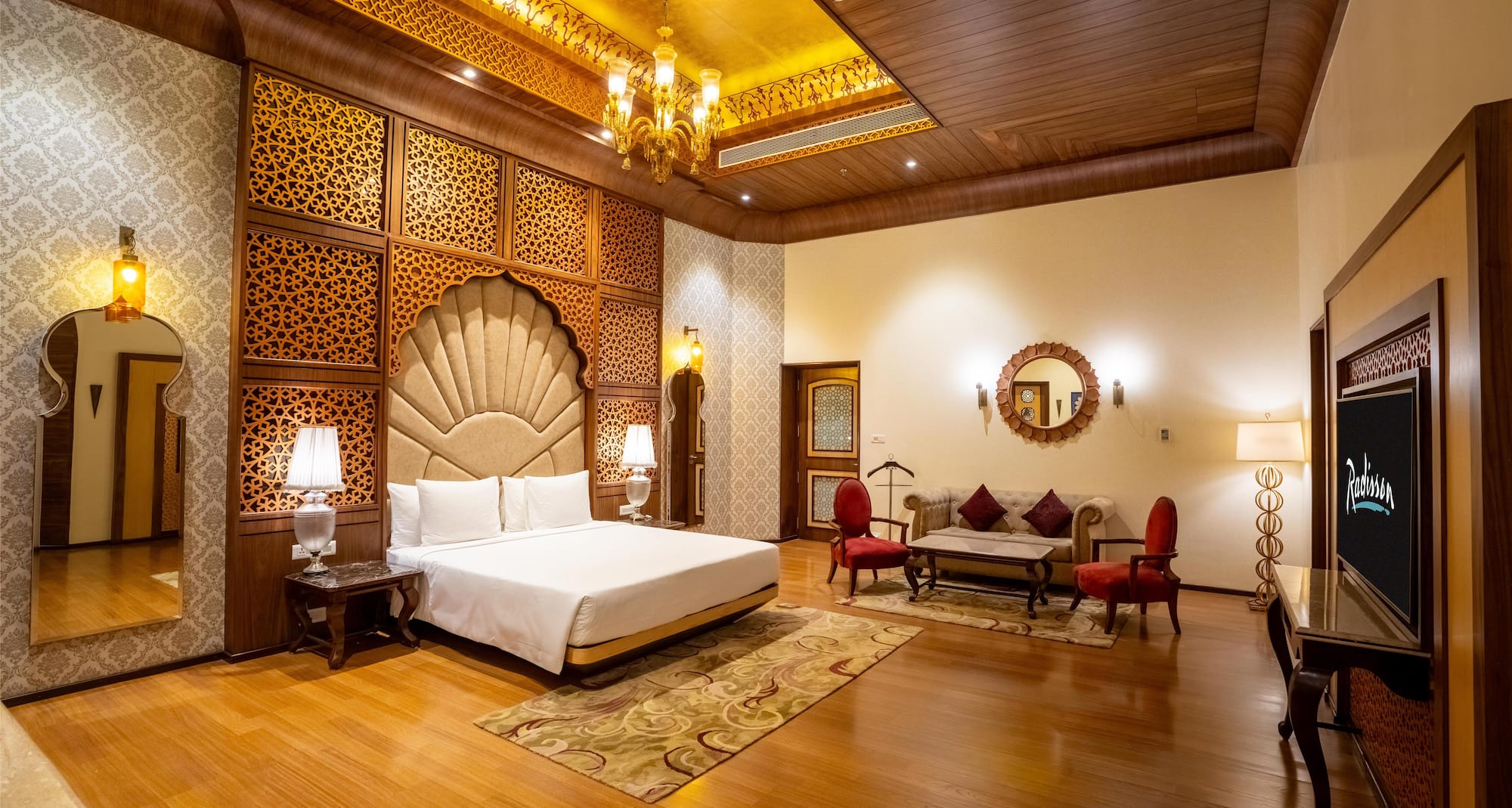 Immerse yourself in the timeless charm of Jodhpur while enjoying world-class comfort at Radisson Hotel Jodhpur. Our 96 elegantly designed rooms and suites blend Rajasthani heritage with modern sophistication, offering premium amenities such as a flat-screen TV, complimentary Wi-Fi, and 24-hour room service. Indulge in a welcome drink and request our turn down service for a seamless and relaxing stay.