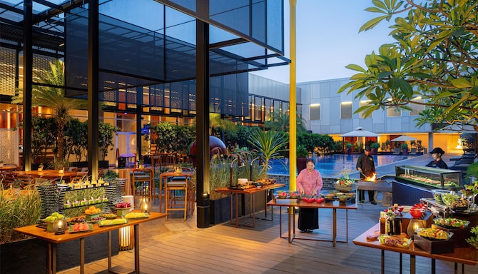 Enjoy dining alfresco at our Pool Restaurant and Bar in Lampung