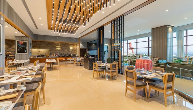 The Radisson Hotel Nathdwara's all-day dining restaurant, and bar and lounge, introduce guests to a world of flavors. Try traditional Rajasthani and Gujrati cuisines, as well as vegetarian dishes from northern and southern India, when visiting our all-day restaurant AKASHGANA. Or head to Brahmand, the rooftop bar and lounge, for an international snack.