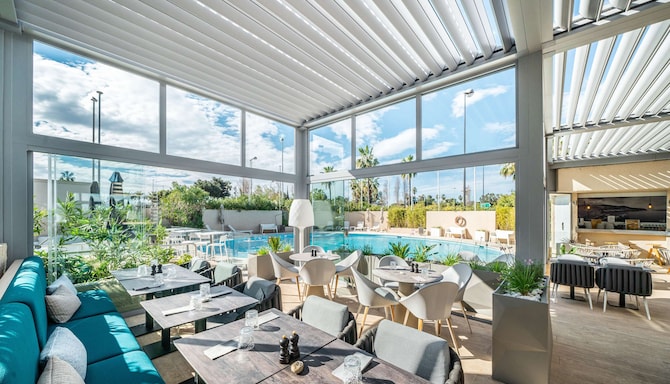 Unwind in one of our 151 large, modern rooms. Discover local flavors at our restaurant, l'Azur Bistrot Niçois, or enjoy refreshing drinks at our bar. For a relaxing summer experience, spend the day lounging by our shimmering pool. Are you planning an event in Nice? Book one of our six meeting rooms, our expert event planning team will help make your special occasion a total success.