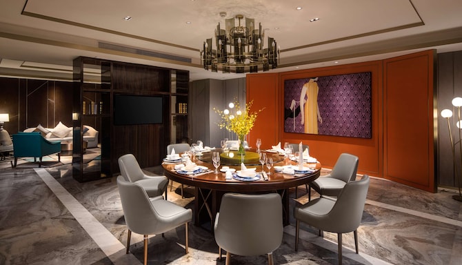 Are you celebrating a special occasion or looking for a stylish spot to gather with colleagues? Radisson Ningbo Beilun has what you need with our on-site dining, which includes two restaurants, a lobby lounge, and an executive lounge. Impress your guests with a front-row seat to the entertaining show kitchen at Hollywood Café, where you’ll find movie-themed décor and a menu of global favorites for breakfast and dinner. Looking for a more intimate setting? Yingshige Chinese Restaurant boasts elegant private dining rooms where guests can savor mouthwatering Cantonese delicacies. For more low-key options, visit our Cannes Lobby Lounge to catch up with colleagues over cappuccinos or toast to your dream vacation with a perfectly crafted cocktail.