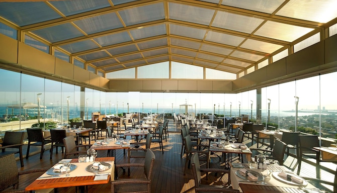 Istanbul is a dynamic metropolis, and this includes its exciting food scene. At our hotel, you’ll have a first introduction to some of the city’s most comforting and celebrated favorites, prepared with the freshest ingredients. Enjoy rich Turkish coffee and snacks at the President Café, mezzes and rooftop views at The Terrace Restaurant. On game nights, our English Pub is as lively as it is welcoming, while our pool bar serves equal measures of cocktails and sea views.