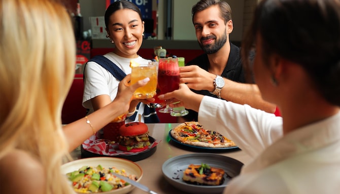 Explore three standout dining destinations under one roof. Start at OUIBar + Terrace for breakfast, followed by casual midday dining and live sport viewing in the evening. Head up to RED Roof for DJ-led evenings and sharing plates. Or slow things down at Jones the Grocer with artisan food, craft coffee, a walk-in cheese room, fresh bakes, and café classics.