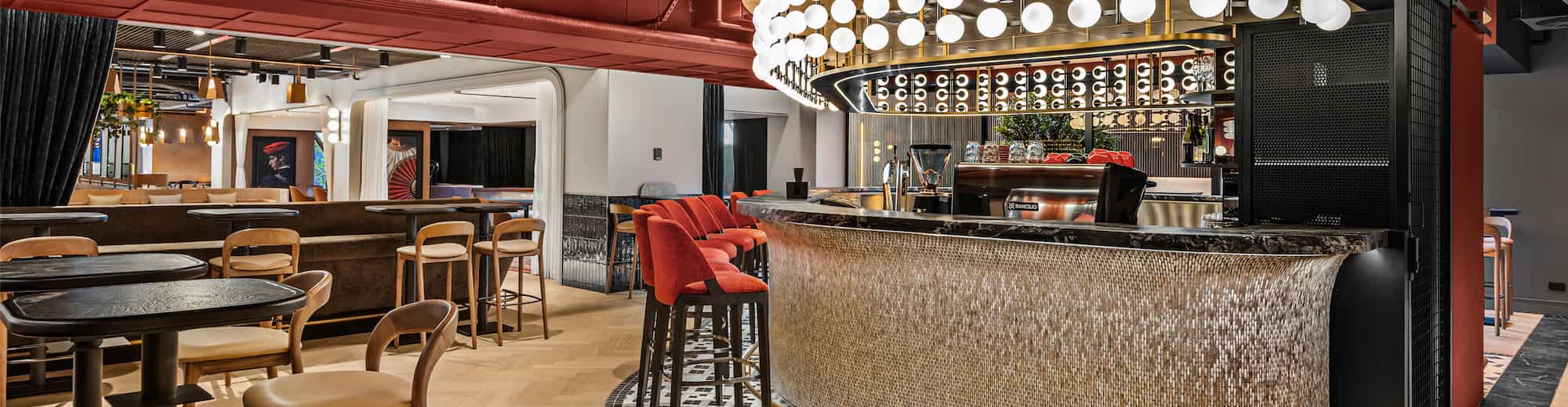 Relax with cocktails or coffee at the Lobby Bar of Radisson RED Auckland, open daily with walk-in seating and credit card payment options.