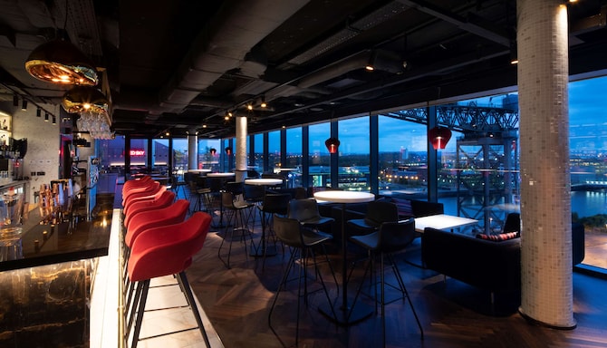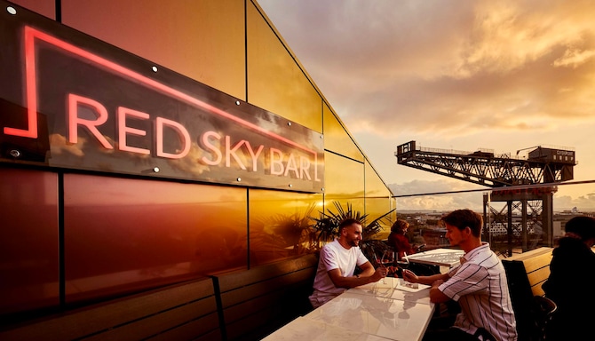 Welcome to Glasgow's first and only rooftop bar. Experience an energy only Glasgow can offer and, with panoramic views of both the city and the River Clyde, enjoy the perfect setting to sip on cocktails or nibble on sharing plates. Located in the Finnieston district, RED Sky Bar offers a place to kick back, and kick start the fun. Enjoy live music from resident DJs every weekend, watch the sun set and prepare for good times, good drinks, and good vibes.