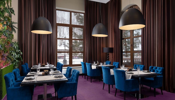 Radisson Hotel, Rosa Khutor offers you a wide variety of excellent places to eat and drink during your stay. Start your morning at Seasons Restaurant, where you can enjoy a tasty buffet including balanced breakfast options and a selection of healthy dishes. Black Bar & Grill restaurant is the perfect place to enjoy delicious grilled dishes in an elegant setting. Take in the views and relax with a drink or cocktail on our hotel's rooftop bar, Sky Lounge.