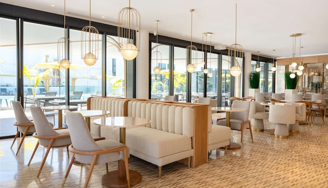 Awaken your senses at Le Célimène, our restaurant where the flavors of Réunion Island are elegantly reimagined. Start your day with a generous buffet breakfast, the perfect prelude to discovering Saint-Denis. For lunch and dinner, indulge in a refined buffet experience that invites you to explore the island’s rich culinary heritage. Dinner for guests on half-board bookings is also served here, in a setting that blends minimalist design with a warm, intimate atmosphere.